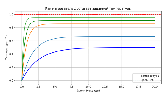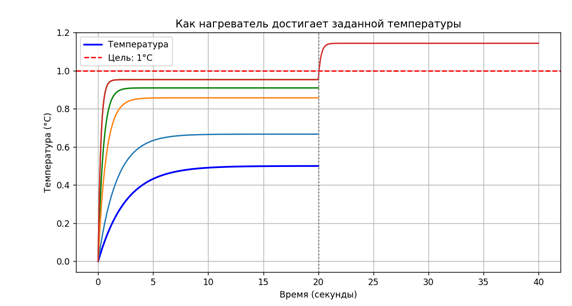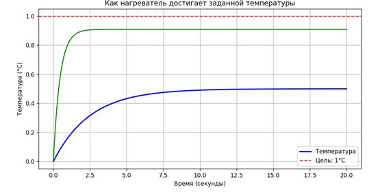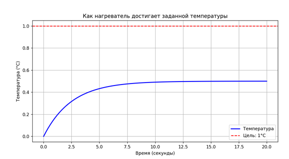 # Моделируем реакцию на ступеньку (резко ставим цель 1°C)